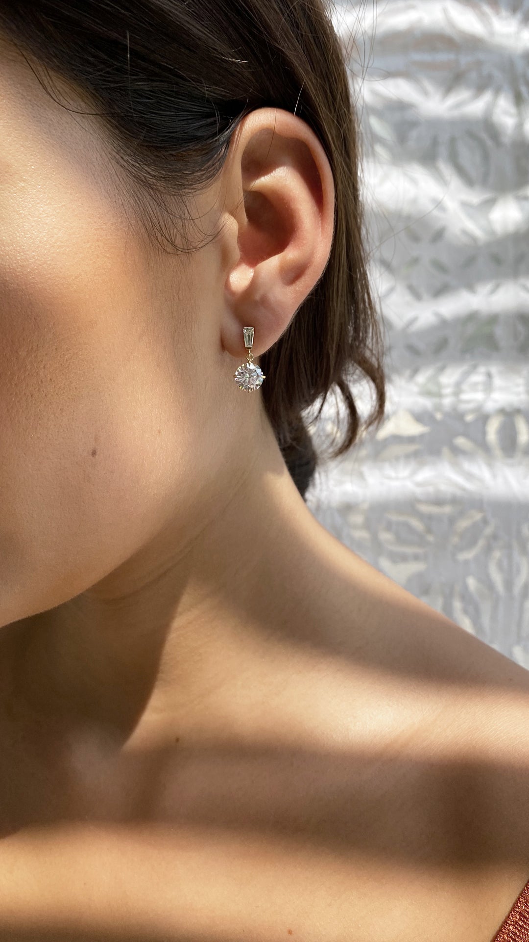 These bestselling drop earrings feature a Baguette stone with a precision-cut Round Brilliant stone that catches the light from all angles.