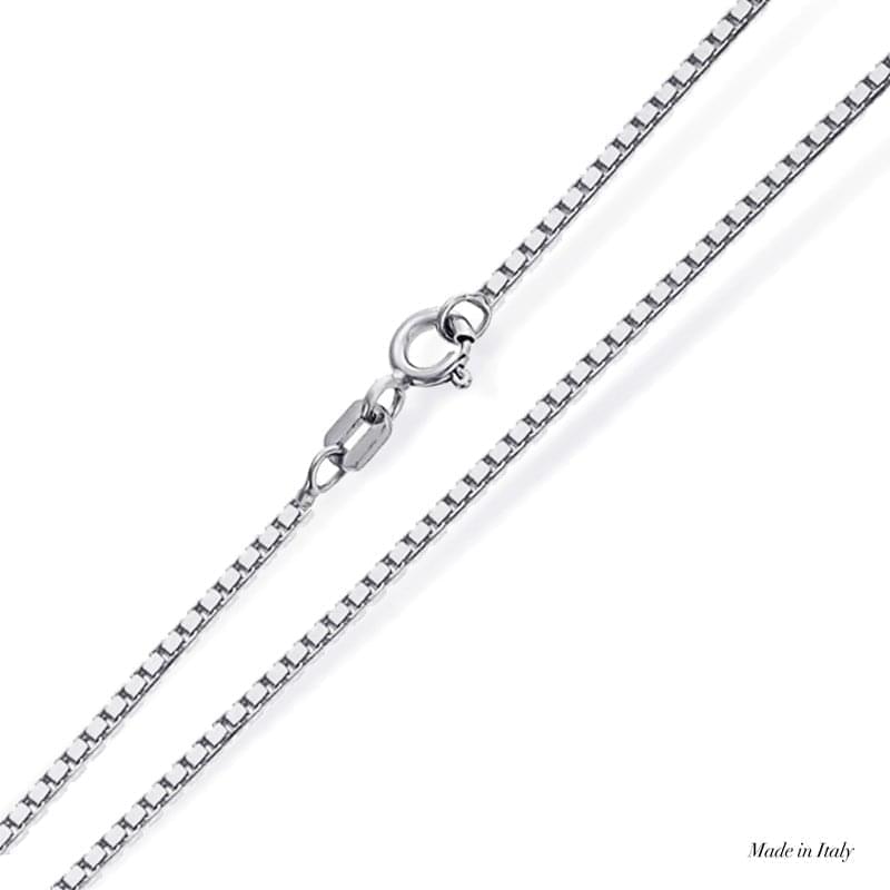 The perfect chain for any pendant. This 9k White Gold Box Chain features a classic spring ring clasp to complete the simple design. Team this dainty chain with your favourite CARAT* London pendant to create your own signature style.