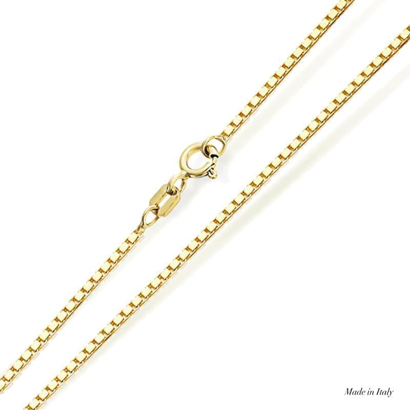 The perfect chain for any pendant. This 9k yellow gold box chain features a classic spring ring clasp to complete the simple design. Wear this dainty box chain with your favourite CARAT* London pendant to create your own signature style.