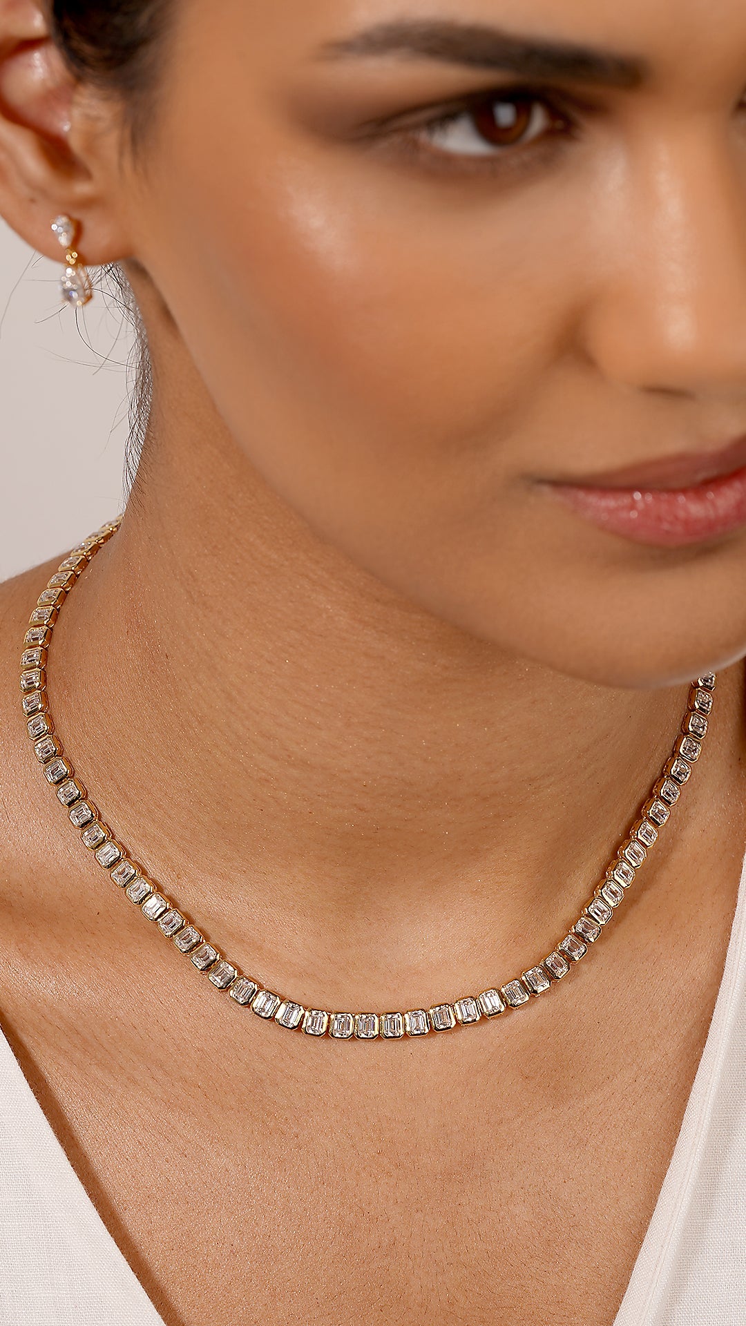 Let your jewellery do the talking. The Cassidy necklace is a beautiful statement piece comprised of a row of sophisticated bezel-set Emerald cuts - the cut of choice of celebrities such as Angelina Jolie and Beyoncé. Complete with a slider closure for an adjustable length. Pair with other pieces from the Cassidy collection.