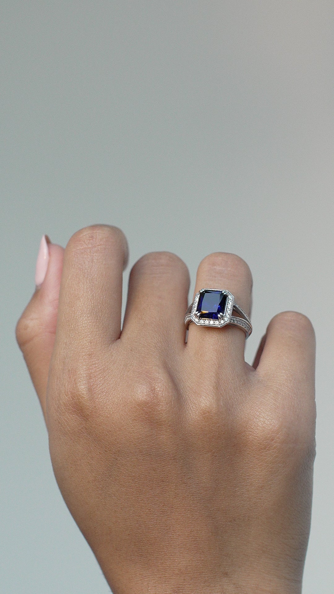 Sterling Silver | White Gold Plated | 3ct eq. centre stone | Lab Grown Sapphire