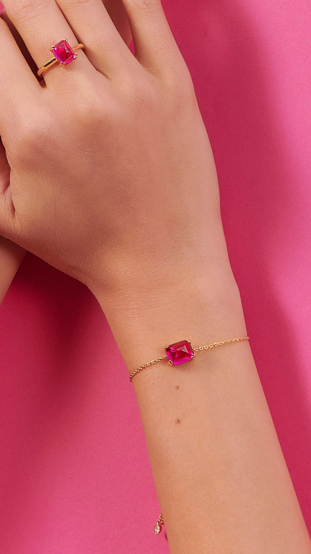 Lab-grown sugarloaf stone in dark pink on gold vermeil slider bracelet for women from the sugardrop collection
