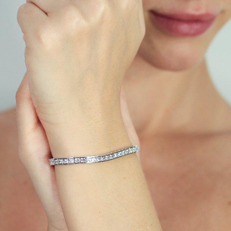 The Tennis Bracelet is an eternal staple piece for every woman's luxury jewellery collection. Featuring our exquisitely cut and polished Princess stones totalling 13.25ct eq. and set in 9K white gold, this clean line bracelet defies the standard design offering an even more opulent look. The perfect power piece to be worn to your business lunch or, team it with a pair of classic drop earrings to elevate your evening look.