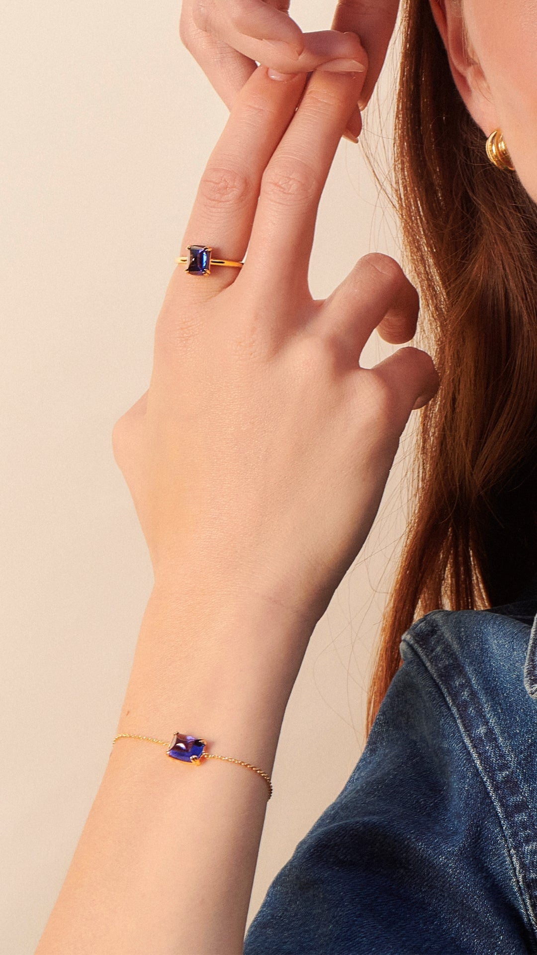 This gold vermeil slider bracelet features a tanzanite stone lab-grown using recycled gemstone waste, making every stone as unique as you are.